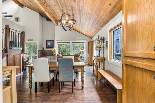 This home welcomes you and your loved ones with three separate bedrooms, two baths, private loft, and dining for 8. It is the perfect spot for a relaxing vacation. The vaulted ceilings opens up to the loft where you can hear the faint giggles of a memorable vacation. Snuggle up to a warm fire after an adventurous day on Mt. Bachelor or relax in the hot tub on the large deck.