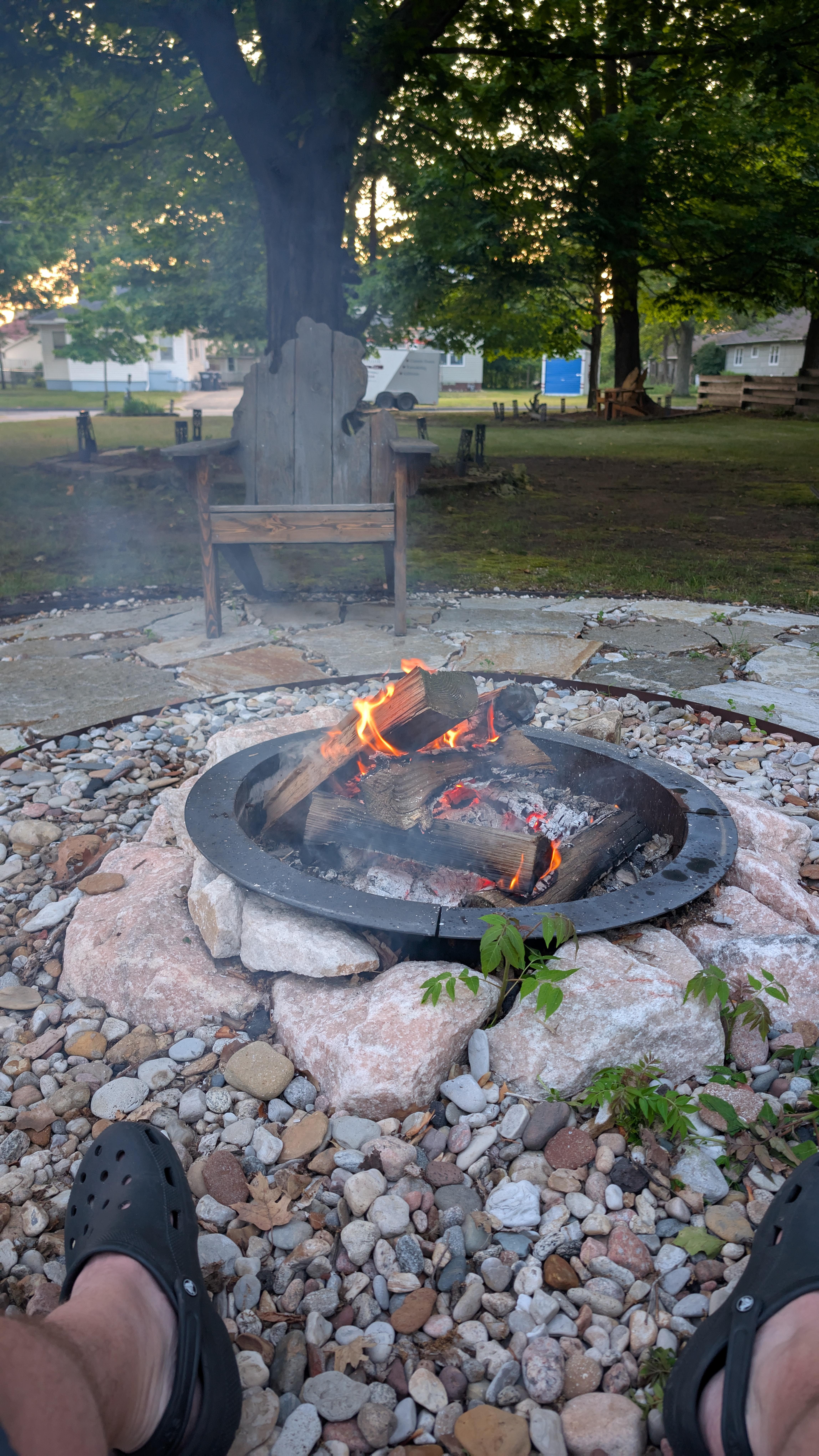 En betydelig gård med modne trær, brann grop, piknikbord og uteservering gir gruppen god plass til å slappe av og leke.