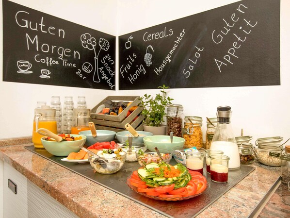 Frokostbuffé serveres fra kl. 06.30 til kl. 10.00 på hverdagene og fra kl. 07.30 til kl. 11.00 i helgene og koster EUR 17 for voksne og EUR 8,50 for barn
