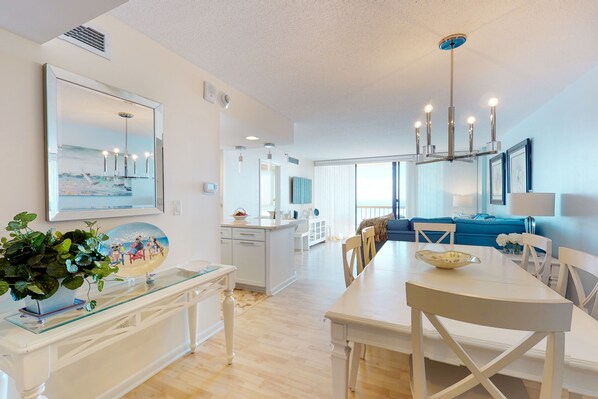 Overlook the surf and sand from the balcony of this updated sixth floor 2-bedroom (and private den), 2-bath oceanfront condo! A convenient one-level layout, this single story surfside featuring a living and dining area, well-equipped kitchen, den, full hallway bathroom and two bedrooms, including the master suite. Accessible without stairs. Central air conditioning, washer, dryer and more. 3 TVs, 2 DVDs, Blu-ray, Wifi.