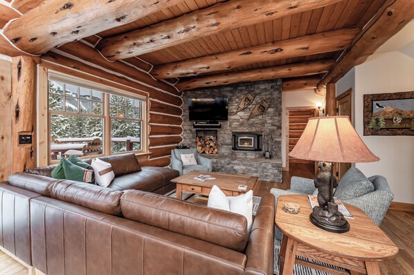Welcome to Elk Creek Lodge, a stunning 5-bedroom luxury cabin in Big Sky, Montana, offering the perfect blend of mountain charm and modern comfort. Thoughtfully designed with upscale amenities, this 3,800 sq. ft. mountain retreat features vaulted wood-beam ceilings, wood and gas-burning fireplaces, a fully equipped gourmet kitchen, laundry room, and boot dryers—ideal for relaxing after a day on the slopes.