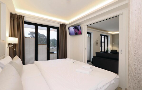 En av de største fredede bygningene i Tyskland har blitt forvandlet til et ekte ferieparadis: moderne leiligheter med sofistikert design direkte ved den 7 km lange drømmestranden Prorer Wiek, som har et nesten karibisk preg med krystallklart vann takket være de nærliggende krittklippene. Langs strandpromenaden ligger det kafeer, restauranter og små butikker som selger dagligvarer. Så du kan ikke bare slappe av på den private balkongen med et glass vin, men også nyte en cappuccino om morgenen eller en sundowner etter en vakker dag på stranden i hotellets egen Prora Solitaire Bar.
