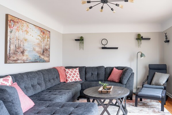 The home itself is sure to tempt you to take a day to relax from all the activity and unwind. With a fully updated kitchen and bathroom you can enjoy all the high end finishes of a hotel but with more room to stretch out and breathe. The kitchen comes stocked with all the necessary essentials to whip up a home cooked meal. We provide everything from the whisk to the salt, all you need is the ingredients and you'll be off to the races. Don’t worry about running out first thing in the morning for your coffee fix, the coffee bar has you covered! With all the essentials plus some, enjoy either just a cup or a whole pot. The open and bright living room provides the perfect space for everyone to wind down from the day or maybe enjoy a movie night all together.