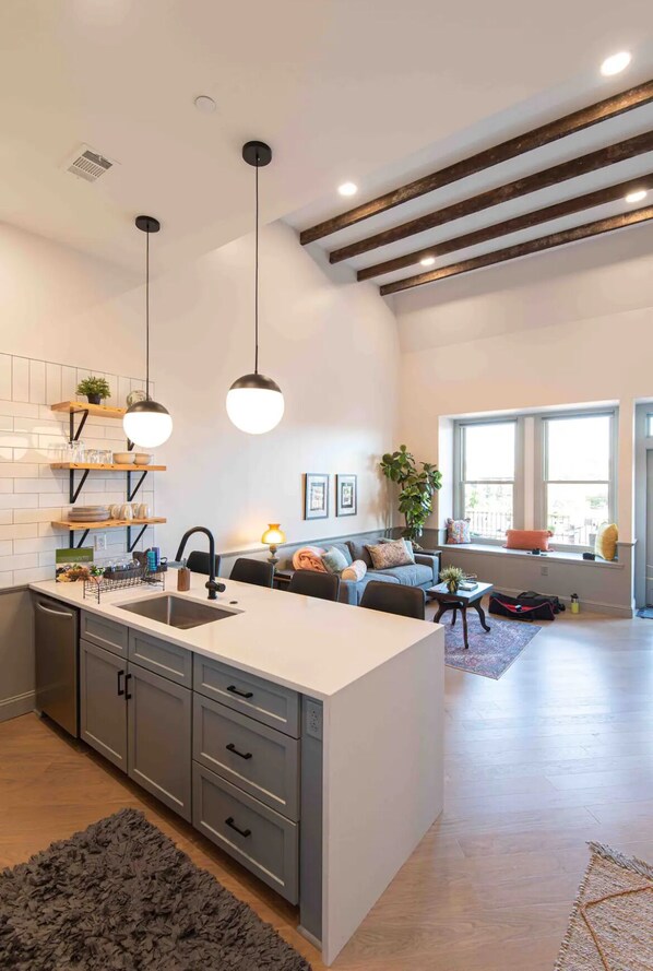 You’ll have the whole place to yourselves! There is also a shared rooftop patio on the same floor overlooking Morris that guests are welcome to use! The building has a cool pedestrian walkway that runs along the lower level connecting Morris Avenue and 1st Avenue N. There are restaurants, art galleries and boutique shopping in the lower level of the building! There is both metered and unmetered street parking. The metered spots are free on nights and weekends. There are also two lots behind the building. One is a lot with a gated arm for $4/day and another is an open lot for $10/ day.