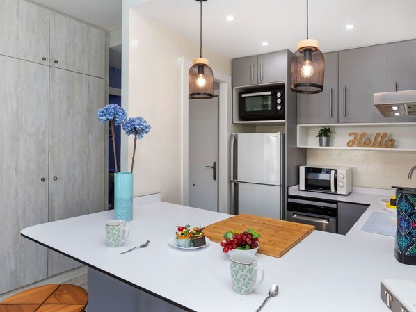 The well-equipped kitchenette comes with 3 ceramic glass hob hotplates, a toaster, kettle, microwave, freezer, and an electric coffee machine for your convenience. The apartment also includes a bath/bidet/WC combination. Other amenities at your disposal are a washing machine, iron, hair dryer, and complimentary WiFi internet access.