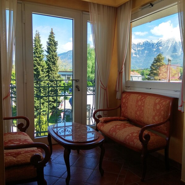 The whole 1st and 2nd floor of the house is for your use. Raised ground floor is in private family use (it is usually only me being there since I manage the property). The uper floors are yours together with fully equipped bathroom, kitchenette with fridge, cooking plate, dishes, glasses, pots, pan,, kettle. Two bedrooms are on 1st floor the third bedroom is on 2nd floor. One bedroom has a nice blacony overlooking the garden at the back of the house. There is also a lounge area on the stairways connecting 2nd and 3rd floor with beautiful open 180 angle view on the surrounding mountains. Please note: the main entry of the house and first part of the open stairway are in joint use. But we make sure you have all the privacy in upper floors of the house. You will have a parking space for your vehicle on the gated yard in front of the house. I am convinced you will like the central location of this property since it is only 3 min away from 2 well stocked supermackets. The bakery, farmenrs market, outdoors activity agency are only 2 min away and the lake, old town 8-10 min away by foot. The nearest bus station is 4 min away.