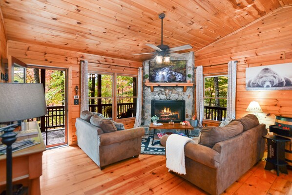 Hundevennlig hytte m / privat badestamp, wraparound dekk, utendørs peis, og mye mer