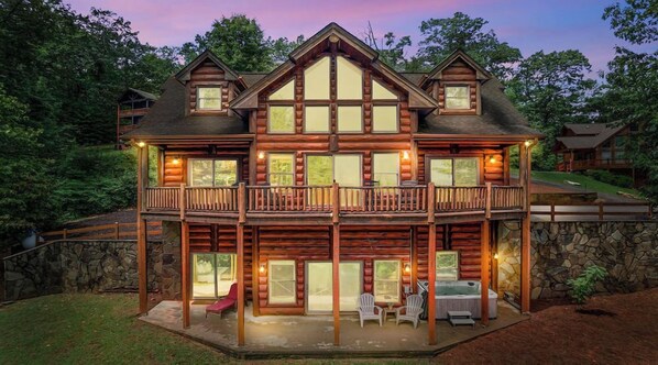 Step onto the upper deck and breathe in the invigorating mountain air. The deck offers more than just a view; it's a space crafted for an authentic connection with nature. Enjoy a laid-back moment on one of the various options of comfortable seating, surrounded by the sounds of rustling leaves and expansive mountain vistas. As the day winds down, head to the lower patio, where a hot tub awaits, offering relaxation and serenity. Nearby, a fire pit with Adirondack chairs invites you to gather around and enjoy the warmth of a crackling fire and an opportunity to perfect your s'mores.