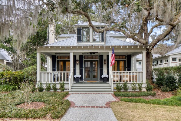 Welcome to Southern Charm, a freshly remodeled 4 bedroom, 3 bath Southern cottage nestled on a quiet street in the heart of Wilson Village, Palmetto Bluff. Styled with contemporary elegance and classic character, this home blends bright, neutral interiors and natural light with cozy porches, upscale amenities, and walk everywhere convenience to shops, river, and dining.