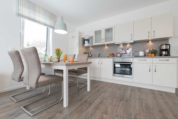 gratis Wi-Fi tilgjengelig ny bygning, Erstbelegung 2018Den ca. 76 m² røykfrie leiligheten "Baltic Stream" ligger i første etasje av "Baltic Cube", en moderne leilighet i Seestraße 30 og kan komfortabelt innkvartere maksimalt 4 personer. Leiligheten er barrierefri, d. h. Både hus og terrasse, dusj, dørbredder etc. er utformet uten barriere. Den "Baltic Cube" ligger bare noen få minutters gange fra Østersjøen stranden i Börgerende. I nabolaget er det en "mamma og popbutikk" med bakeri og strandartikler. �� Den smakfullt innredede 3-roms leiligheten har to separate soverom, stue / spisestue med åpen kjøkkenløsning, bad med dusjkabinett, et oppbevaringsrom med vaskemaskin, en delvis overbygd terrasse og en stor parkeringsplass, som ligger rett ved huset. På eiendommen er en egen, som tilhører leiligheten utendørs lagring for sykler, barnevogner eller lignende. Alle terrasser og vinduselementer har skodder med motorer, som i tillegg til sommerlig solkrem spesielt for småbarn og babyer for høy sovkomfort. I den lyse og smakfullt innredede stuen, en koselig sofa med tilhørende lenestol og et stort spisebord, som komfortabelt seter fire personer, inviterer deg til å nøle. Gulvnivåene p�� terrassen sørger for lyst oppholdsopplevelse. Videre er flatskjerm-TV i stuen og i barneværelset, DVD-spiller og et stereoanlegg selvfølgelig de moderne fasilitetene til denne leiligheten. Stuen er terrassen beskyttet av en voksen hekke og en skjerm i vestorientering med smakfulle hagemøbler. Her kan du nyte måltidene og en avslappende ferie mens du soler, og også med fine griller (en grill som tilhører leiligheten er klar). Videre har leiligheten to separate soverom. Det store soverommet har en romslig dobbeltseng med to enkeltsenger (hver 0.90 m x 2.00 m) og en stor og romslig garderobe. Det andre soverommet har 2 enkeltsenger (hver 1.00 m x 2.00 m), en TV med Blue Ray-spiller og en annen garderobe. Den høye kvalitet, moderne utstyrt kjøkken har oppvaskmaskin, kjøleskap og fryser, ovn, keramisk platetopp, mikrobølgeovn, brødrister, kaffetrakter og vannkoker. Retter, matlaging og tilbehør - fra blender til eggcup - er selvfølgelig fullt tilgjengelige. I oppbevaringsrommet ligger i leiligheten finner du z. Som vaskemaskin, strykebrett og strykejern. Det lyse badet med vindu og gulvnivådusj har en forfengelighet med stort speil, en servantskap, en hårføner og et håndklevarmer. I kjølesesongen sørger gulvvarme for behagelig varme og koselighet i alle rom. Det er mulig å leie sykler, terrengsykler, tandem, 4-hjulsbuss eller en Kettcar på stedet. Et vaskeri kan bestilles mot et gebyr. En reise barneseng og barnestol er tilgjengelig gratis Dyr er ikke tillatt. Det er en røykfri leilighet. Sikre kravet ditt til en av de ettertraktede strandstolene, og bestill nå for spesielle forhold (EUR 7, - per dag, EUR 40, - per uke).