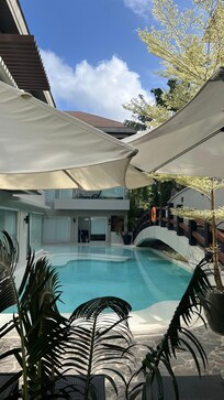 Ja, dette overnattingsstedet har et utendørsbasseng og et barnebasseng.