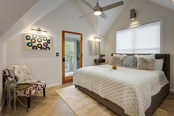 Enjoy a stylish experience at this centrally-located 2BR 2BA downtown modern bungalow with modern cathedral ceilings and designer-inspired finishings throughout.