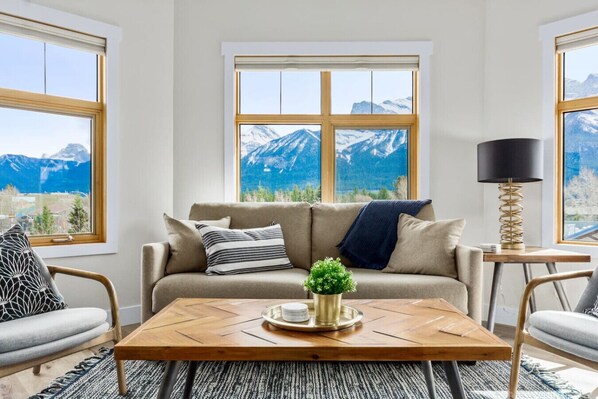 Located on the third floor in the heart of Canmore, this spacious condo features expansive windows that perfectly frame a stunning 180-degree panoramic mountain view. With designated outdoor parking located directly beside the building (uncovered), leaving your car parked is an easy choice. Restaurants, grocery and liquor stores, boutiques, equipment rentals, and activity providers are all just a few minutes’ walk away. Stroll along Main Street or head to the walking and biking trails lining the beautiful Bow River.
