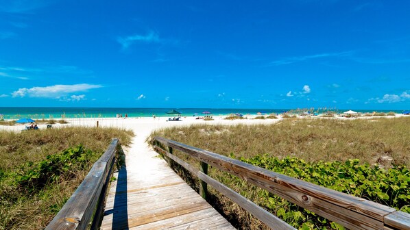 Denne leiligheten ligger ved vannkanten i Bradenton Beach. Er du på utkikk etter vakre naturomgivelser, kan du ta turen til Bradenton Beach og Coquina Beach. Fish Hole Adventure Golf og H2O Watersportz er også verdt et besøk. Området byr på vannaktiviteter som vannscooterkjøring og vannskikjøring, men du kan også oppleve den flotte naturen gjennom turer til fots eller med sykkel og sykling. Se vår reiseguide til Bradenton Beach