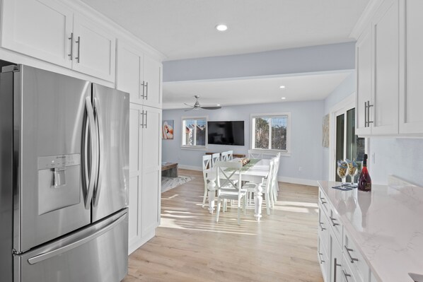 Gulf View Paradise 1955 Gulf Drive North, Bradenton Beach 34217 What you will love about this property: • Located across the street from the beach • Rooftop deck with stunning views • Private pool • Private balconies with views • Less than a 1-minute walk to beach • Beach items- Beach chairs, beach wagon • Professional Linen program • Mini bar with fridge on top floor • Full size washer and dryer • Close to shops, restaurants and free trolley access • In the heart of Bradenton Beach Property details: Welcome to Gulf View Paradise! This extraordinary seven-bedroom, five-bathroom, multi-level vacation rental is designed for the ultimate luxury getaway. Nestled in the heart of Bradenton Beach, this stunning home is just a short walk from the Gulf of Mexico, local restaurants, and parks. Experience a perfect blend of relaxation and adventure for all ages. The opulent primary bedroom is so gorgeous, with calming, neutral, warm tones that create a soothing atmosphere and a premium bed to ensure a good night's sleep. The ensuite bathroom exudes a spa-like vibe with a double vanity, a walk-in shower, and a standalone tub. Guests can choose between rooms with a walk-in shower or a shower and tub combination, depending on their preference. A convenient washer and dryer are available as well. And for those who crave more Florida sunshine, there are 3 balconies with Adirondack chairs and a rooftop deck with incredible views! The sleek, fully equipped kitchen has everything from high-end appliances to pots, pans, dishware, and cutlery to ensure every chef can shine. With a large kitchen and chic dining room table, there's plenty of room for everyone to gather and enjoy delicious meals together. Gulf View Paradise offers the ultimate vacation experience with the added amenities of beach items, an outdoor shower, a BBQ grill and great outdoor entertainment. Enjoy the very large poolside TV, Ping pong table, Corn hole and plenty of seating. It's the perfect destination for memorable moments and relaxation, ensuring the getaway of a lifetime. Get everyone together in comfort and style at Gulf View Paradise. Book with us today. Bedrooms & Bathrooms • Primary Bedroom: Main floor King bed and ensuite bathroom with large walk-in shower • Second Bedroom: Main floor bunk bedroom with two sets of twin bunks • Third Bedroom: Main floor guest bedroom with king bed • Guest bathroom- Main floor with dual sinks and walk in shower • Fourth Bedroom: Top floor king bed with views and balcony and ensuite bathroom with walk in shower • Fifth Bedroom: Top floor bunk bedroom with twin over full ensuite bathroom with walk in shower • Sixth Bedroom: Top floor guest bedroom with king bed • Seventh Bedroom: Top floor guest bedroom with king bed • Guest bathroom: Top floor hallway bathroom with shower and bathtub combination This property participates in our Professional Linen Program. In Beach House Real Estate's continuous effort to bring only the best quality experience to our guests, we are proud to offer a professional linen service at this property to better enhance your enjoyment while staying here. This luxury amenity provides you with high quality linens; including bedding, bath towels, wash cloths, and beach towels that are in place and ready for your use upon your arrival. These high-quality linens are washed in a commercial setting using the latest and best technology. Exciting news Golf carts offer a delightful, cost-effective, and hassle-free means of transportation on Anna Maria Island throughout your visit. Live life at a slower pace while on vacation. Cruise around in the Florida sunshine feeling the Gulf Coast breeze. Rent a six-seater electric golf cart at only $750 a week. Please contact us to reserve your golf cart today! Are you bringing the kiddos? We have pack & plays and highchairs too! Your item(s) will be at your rental property for your arrival, and we will pick them up at your departure. We rent by the week: Pack & Play - $50.00 Highchair - $40.00 Please contact us to reserve your baby equipment. Friendly reminders CONSTRUCTION: In the event of neighboring construction, Beach House Real Estate shall not be held responsible to provide any type of advance notification to incoming guests, as we do not receive any type of notification of new or ongoing construction projects (new construction, exterior or interior renovations, pool/landscaping installation, etc.). Property views are subject to change due to construction that may occur on the island. No pets are allowed in this home. This home is managed by Beach House Real Estate, an Anna Maria Island property management company. Please remember you are vacationing in a residential area. Please be a good neighbor by keeping the noise to a respectful level during the day and night. Excessive and unreasonable noise can deprive neighbors of the peaceful enjoyment of their private property. Exceeding the noise ordinance could result in disciplinary actions including fines and/or termination of your rental agreement without refund. We do not accept reservations from anyone under 25 years of age. We do not allow persons under 25 to occupy a property unless accompanied by someone over 25 years of age. Please note: 4 cars maximum can park at this home. We ask our guests to please plan accordingly and coordinate with your group. There is no overnight parking available for additional vehicles.