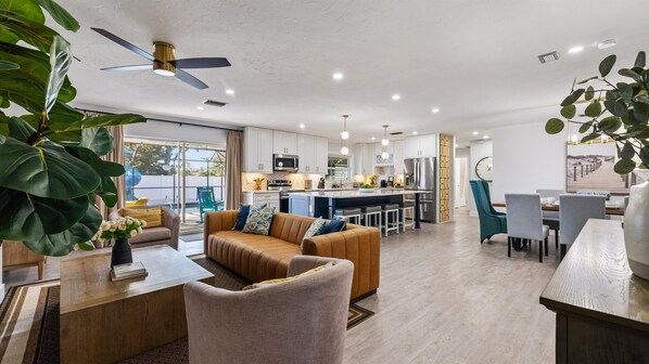 Guests love the prime location — just minutes to Anna Maria Island’s sugar-white beaches, IMG Academy, Robinson Preserve, and Downtown Bradenton — all while enjoying a quiet, safe neighborhood. Inside, three king bedrooms and a stylish open-concept layout ensure relaxation, while outdoors, the poolside lanai sets the scene for coffee at sunrise or cocktails under the stars.