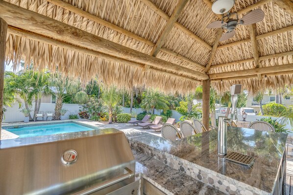 * Poolside Tiki bar with granite counters, built in grill and beer taps