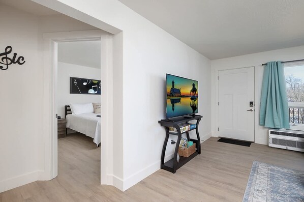 Step inside and instantly feel at home. The open-concept living area is filled with natural light and features all-new furnishings, including a plush recliner perfect for sipping your morning coffee while streaming your favorite music on the 55” Smart TV.