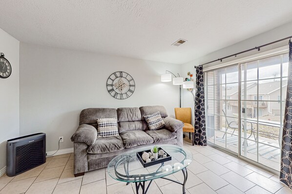 After a day filled with adventure, the bright interior of your condo welcomes you in with open arms. The kitchenette is well-equipped with a full suite of appliances and a stackable washer/dryer. Stream all of your favorite TV shows from the comfort of the plush sofa or while around the dining table.