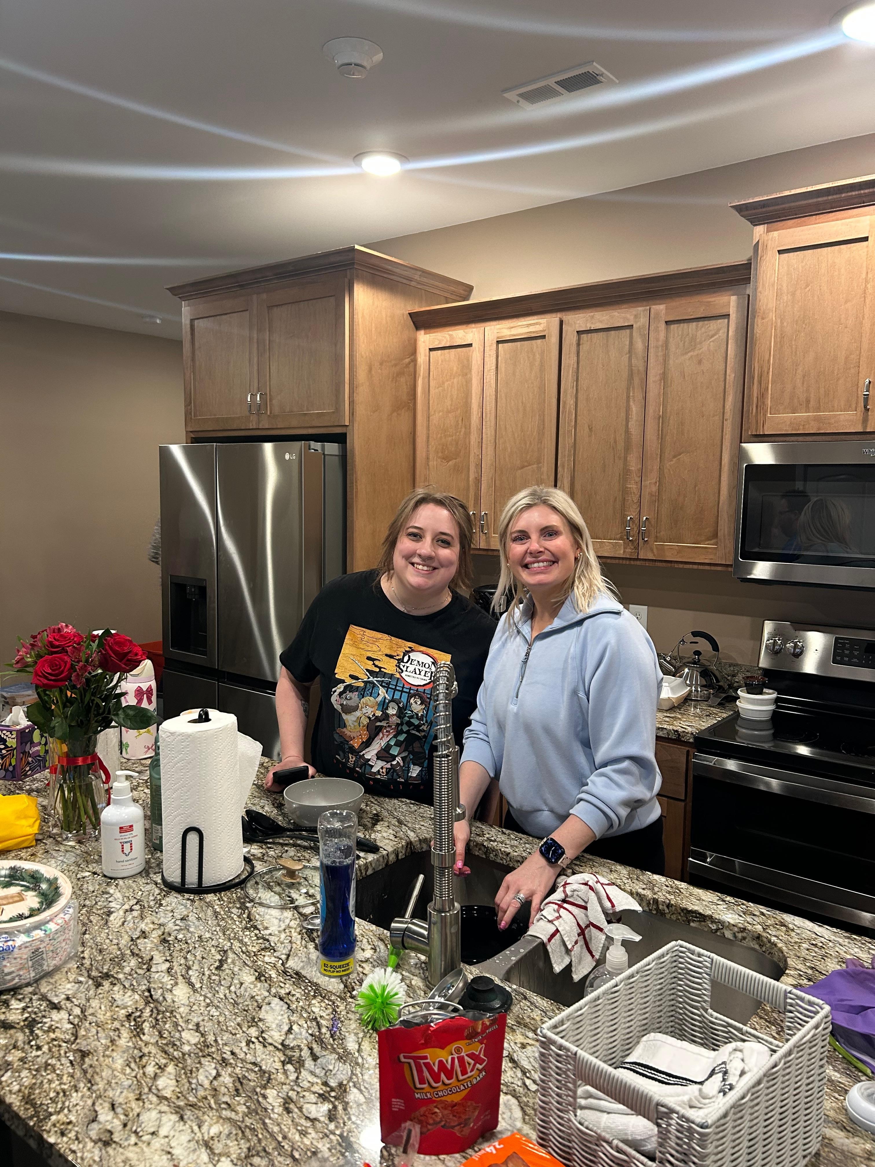> Full granite kitchen with almost every implement you need to make a great meal, including side-by-side refrigerator, double oven, glass top 5-burner stove, over the range microwave, flat top griddle, crock pot, two traditional drip coffee makers, toaster, pots, pans, full set of dishes, silverware, glass & plastic drinkware, coffee mugs, dual dishwashers, food storage containers, double sink w/commercial sprayer & garbage disposal, plenty of cabinet storage, and propane BBQ grill on the side deck just outside the kitchen.