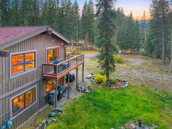 Outdoor Living: Step outside to enjoy the fresh alpine air and expansive deck with forest and mountain views. Outdoor seating and a propane BBQ grill make it the perfect spot for morning coffee or family dinners surrounded by nature.