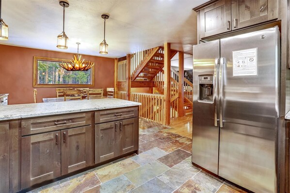 Den ekspansive, dekkede verandaen har gyngestoler og en gassgrill. Utenfor omgir et eventyrland av furutrær det boblende boblebadet, der gjestene kan nyte en tid med avslapning etter en lang dag i bakken. Dette hjemmet tilbyr også en mengde spill - inkludert et fotballbord, et airhockey-bord og pop-a-shot basketball - som sikkert vil være en morsom tid for alle i familien. Når du er klar for utendørsaktiviteter, kan dette nabolaget skryte av mye terreng for langrenn, fotturer og utforske nær Blue River. Breckenridge sentrum ligger bare 2 kilometer unna og viser utrolige spisesteder og shoppingmuligheter, og selvfølgelig all den utrolige snødekte fjellutsikten du kan be om! Din perfekte "Snowy River Retreat" venter - ta kontakt med 360 Blue i dag for å bestille din ferie i dette utrolige Breckenridge-hjemmet!