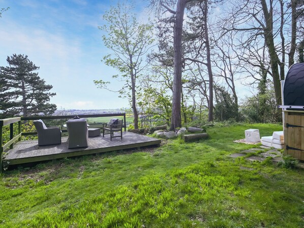 Shower Room: Cubicle Shower, Toilet. Electricity, bed linen and towels included. External kitchen with electric cooker, combi microwave/oven grill and fridge. External shower room with walk-in shower and toilet. Grounds with sitting out area with garden furniture, summerhouse and firepit. Private parking for 2 cars. No smoking.. The Hideaway is situated in 3 acres of woodland, accessible by a country lane. It is not directly accessible by car but has dedicated off-road parking spaces in the adjacent field. Guests have exclusive use of the woods and fields as far as the eye can see when staying at The Hideaway.