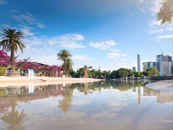 ✔︎Walking - With many attractions within walking distance, enjoy the scenic routes along the river and through the city streets. Queen Street Mall is just across the street, and Southbank Parklands is a pleasant 15-minute walk away.