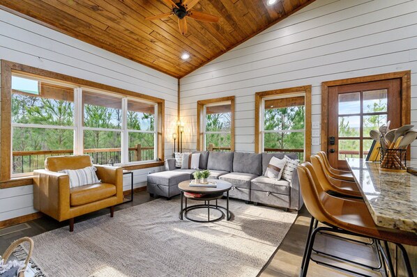 Hytte med kjøkken og terrasse i Hochatown