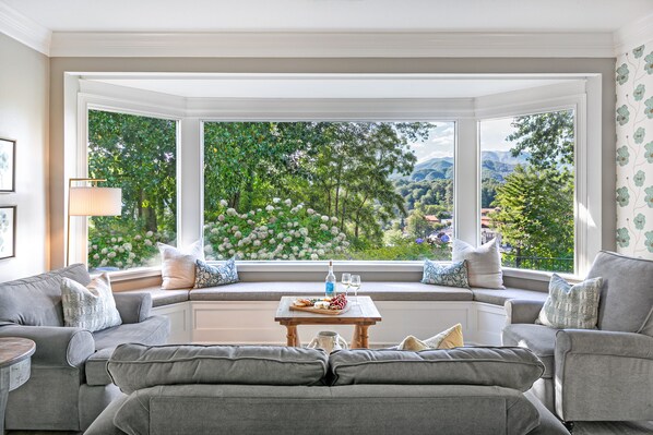 A luxurious, updated house in the Smoky Mountains offers 5 bedrooms and 5.5 bathrooms (all full bathrooms are private en-suite) overlooking downtown (sleeps up to 14), plus a fully updated historic studio cabin for 2 -- up to 16 guests! Walking distance to downtown Bryson City's shops, dining and craft breweries with live music. Great Smoky Mountains Railroad is also minutes away. Easy and quick 10 minute drive for fishing, tubing and hiking at Deep Creek.