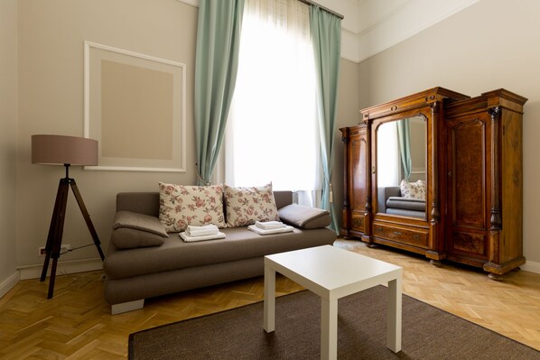Studio – premium, 1 queensize-seng, mellometasje