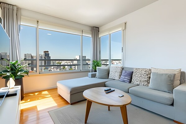 Recently equipped apartment in a luxury tower in Palermo Soho. The master bedroom has a king bed, walk-in closet, and en suite bathroom, while the second bedroom offers two single beds or a queen bed. The living room provides access to a large heated private terrace. Enjoy a fully equipped kitchen, washing machine, high-speed WiFi, Smart TVs, and Nespresso. The building features 24-hour security, a pool, barbecue areas, a gym, and a terrace with a heated pool and jacuzzi.
