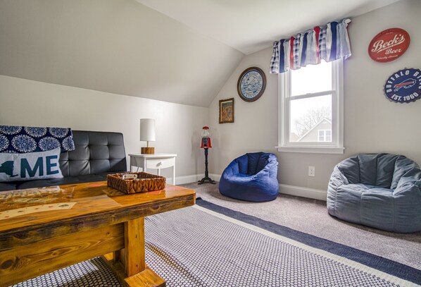 Relaxation awaits in our inviting living room, where comfy seating pairs perfectly with a 55" smart TV. And for those after-dinner competitive streaks? Head upstairs to our fun-filled game room and challenge your companions to a game of Battleship or UNO.