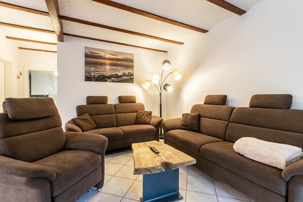 Come in and enjoy your vacation at Haus Apenboom. The apartment "Steuerbord" offers space for 1-4 people and welcomes you with a bright, cozy living and dining area, which is modernly furnished and equipped with a high-quality sofa set. The large dining table invites you to enjoy the delicacies of the region in a convivial atmosphere. The fully equipped kitchen with a fully automatic coffee machine and microwave offers everything you need for cooking.