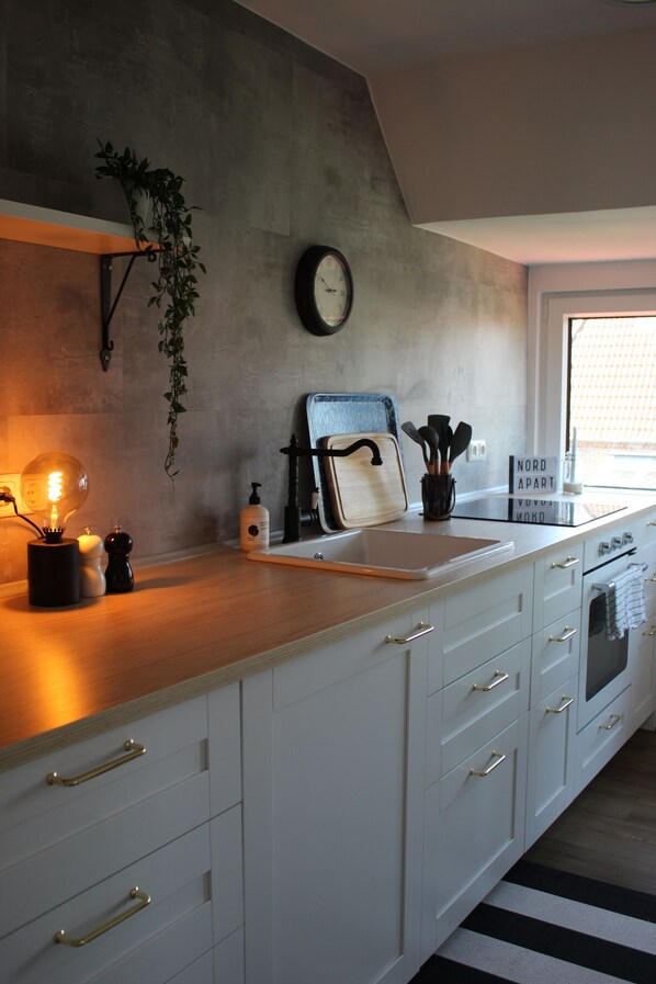 Leilighet med kjøkken og peis i Butjadingen