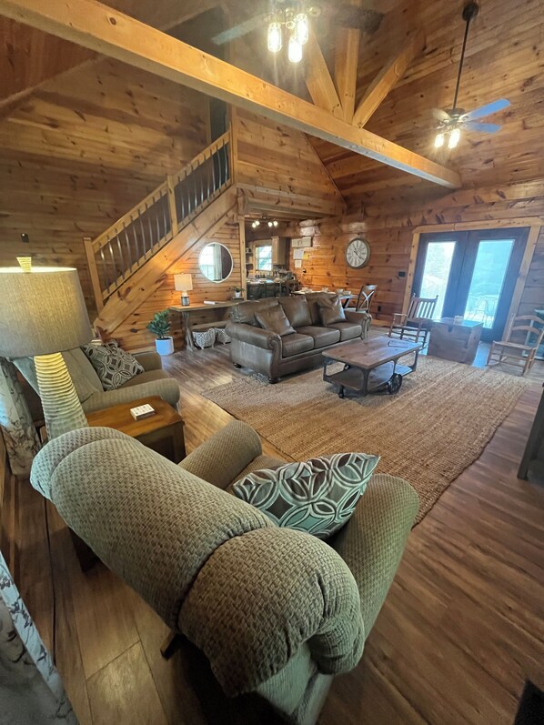 This beautiful cabin is nestled in the hills of Middle Tennessee and super close to Dale Hollow Lake and East Port Marina! If you're looking for a great destination for your boating, fishing, or just need a relaxing cabin getaway, you've found it! This 3 bedroom / 2 bath cabin sleeps up to 8 guest. Enjoy the breathtaking views of the rolling hills while relaxing on the back deck. You may even see deer passing by at times! The large fire pit is a great place to gather while sharing good times and making new memories.