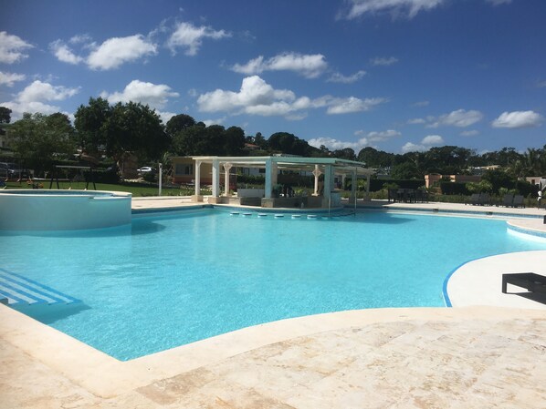 The community has a newly added water park as well, with a swim up bar, restaurant, lounge areas, lazy river, children’s water park and separate adult pools.
