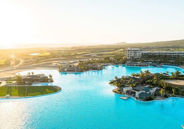 Condo was large and well kept. Main pool was beautiful and the staff really attentive. Loved the golf, gym and aqua park. Although you can’t swim, the ocean was also so pretty. Very peaceful resort.