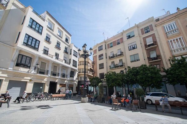 Denne leiligheten ligger i bydelen Cádiz gamleby i Cádiz. Et par kulturelle høydepunkter er Beaterio-katakombene og Cadiz museum, mens Alcaidesa Links Golfbane og Cádiz havn kan friste med morsomme aktiviteter. Fragua Camarón de la Isla og Aqualand bahia de Cadiz er også verdt et besøk.