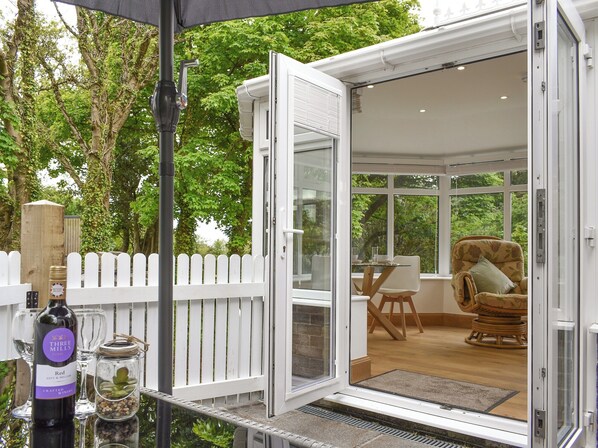 Shower Room: Walk-In Shower, Heated Towel Rail, Toilet. NSH, (electric underfloor in bathroom) electricity, bed linen, towels and Wi-Fi included. Initial logs for wood burner included. Highchair.. Patio with garden furniture. 3 dogs welcome, to be kept on a lead at all times (working farm). Private parking for 1 car. No smoking.. Situated down a quiet lane you’ll find this ideally located home. There’s a spacious open plan living area with a cosy wood burner - perfect for colder evenings. There’s also a fully equipped kitchen with everything you’ll need for your break. The bedroom has been finished off with quality bedding and a plush mattress to ensure a restful night’s sleep. Outside there’s a lovely, enclosed, private seating area; a fantastic spot to sit and relax in after your day’s adventures, with a gentle stream running through to really add to this relaxing spot. You won’t be disappointed staying here!