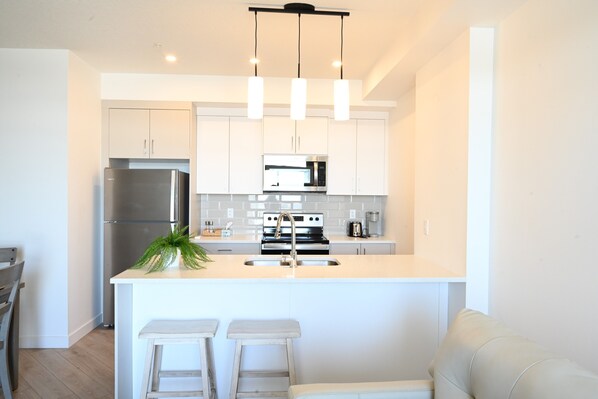 I stayed here for 3 weeks while working in Calgary and everything was great! Location was convenient, condo was very clean and included everything I needed, host was super communicative, and check in process was super smooth! Would definitely recommend:)