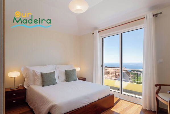 Bedroom 2, 1st floor, Double bed (140 x 200), Single bed (0,90 x 2,00), wardrobe, TV, opens to private balcony.