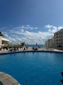 På stranden og med 3 utendørsbassenger og beliggenhet nær Iberostar Cancun golfbane