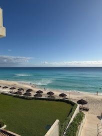 We stayed for 4 nights and really enjoyed our visit. We had a beach front room and enjoyed time watching the sea for hours in peace. There are a lot going on around the pools, to much for our taste, the noice and pushy staff was troubling. Since we had beach front room, the room was much more quiet during the day. Down at the beach the atmosphere is calmer, and a bar provided drinks. The room had a large bath room and comfortable bed, the minibar was restocked daily with basics.