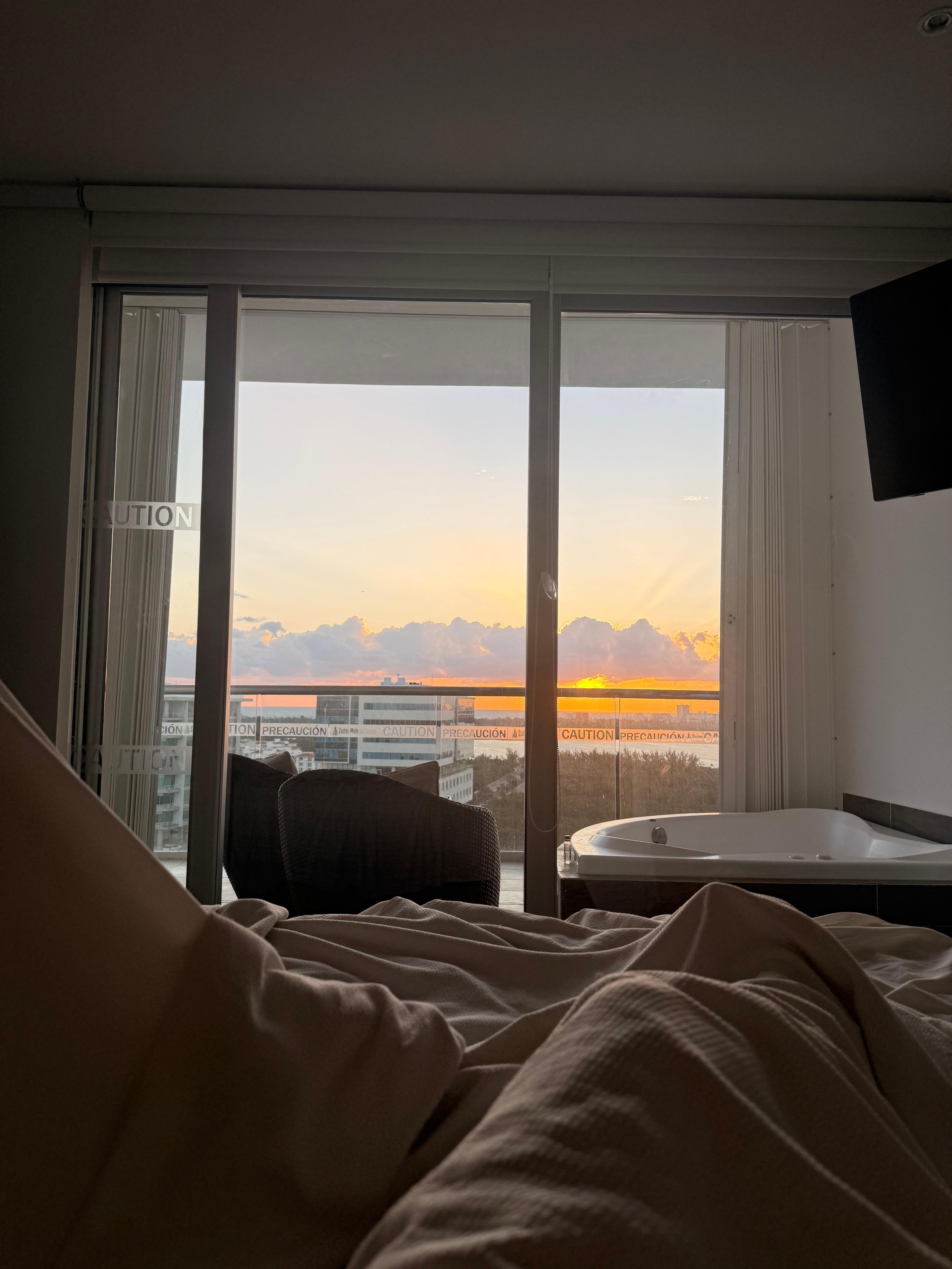 Stunning view, you could be in bed and watch the sun raise and the hot tub on the balcony was incredible! Staff were super friendly too, both the front desk and the security guard.