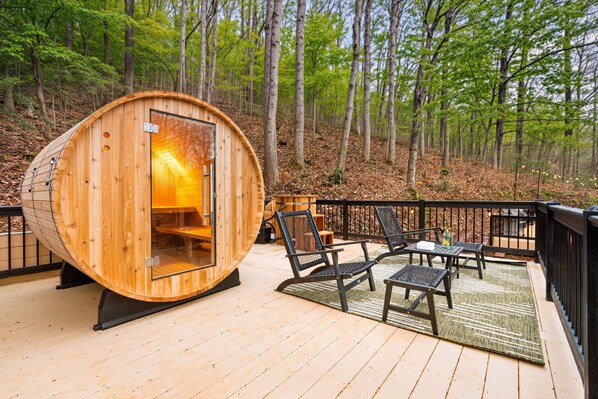 Velger du Ultimate 7BR Getaway. Sleep 20.Pickleball, Golf Sim, Arcade, Theatre, Sauna, Spa, kan du dra nytte av fasiliteter som golfbane på stedet, ildsted og hage. Badstue og boblebad byr dessuten på både hvile og avslapning. Wi-fi på rommet (inkludert) er tilgjengelig for alle gjester, i tillegg til fasiliteter som lekeplass og spillrom.