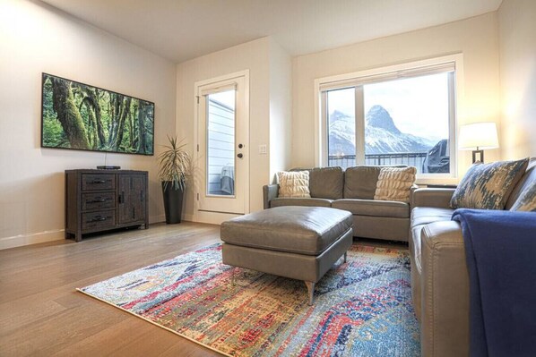 Self check in via smart cipher lock with new custom code for each stay. This is new build construction with all modern appliances and fixtures. The private deck is for your exclusive enjoyment and boasts breathtaking unobscured views of Rundle, Ha Ling, and Three Sisters peaks. Not many places have all three of these epic mountains in sight. The bedrooms both feature expansive penthouse style floor to ceiling windows.