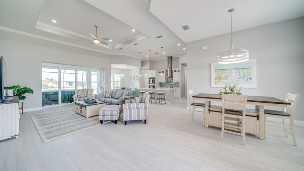 Wonderful home! Everything was just as pictured, if not better. We loved the pool and lanai and used that the most. The amount of pool gear was wonderful. My husband felt pretty cool watching football on tv from the swimming pool! The dock was awesome! The glider rockers were wonderful and we got to see lots of birds and fish. I was able to fish all I wanted and caught something each day. The fishing pole was much appreciated. The beds were very comfortable and the kitchen was fully stocked with whatever we needed. The master suite is just gorgeous! Great location and beautiful area. We cannot wait to come back. Thank you so much.