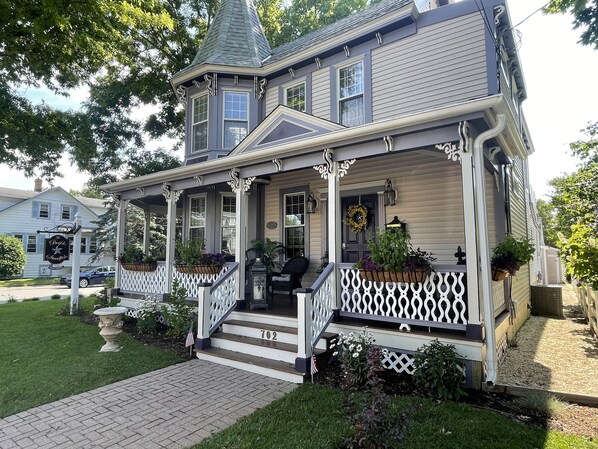 Vakker 1889 Cape May viktoriansk hjem 0. 8 miles fra stranden. Huset har 3 private soverom og 2 + komplette bad. Wrap rundt veranda å sitte og slappe av etter en morsom dag på stranden.