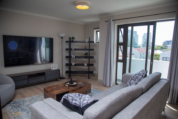 Denne leiligheten ligger i bydelen Bloubergstrand i Cape Town. Er det shopping som står på planen, kan du ta turen til Long Street, mens Bloubergstrand strand og Taffelberget kan friste med vakre naturomgivelser. SANCCOB Penguin rehabiliteringssenter og Cape Town vitenskapssenter er også verdt et besøk. Se vår reiseguide til Cape Town